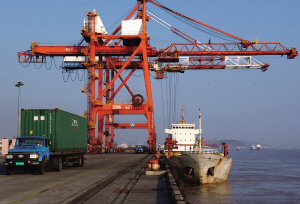 門式起重機是橋式起重機的一種變形,又叫龍門吊。主要用于室外的貨場、料場貨、散貨的裝卸作業。門式起重機具有場地利用率高、作業范圍大、適應面廣、通用性強等特點,在港口貨場得到廣泛使用。